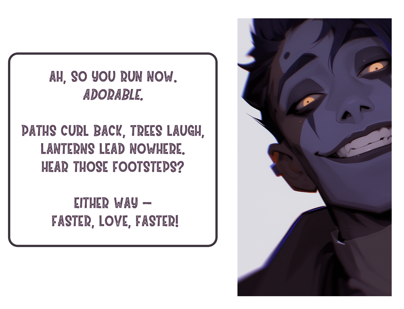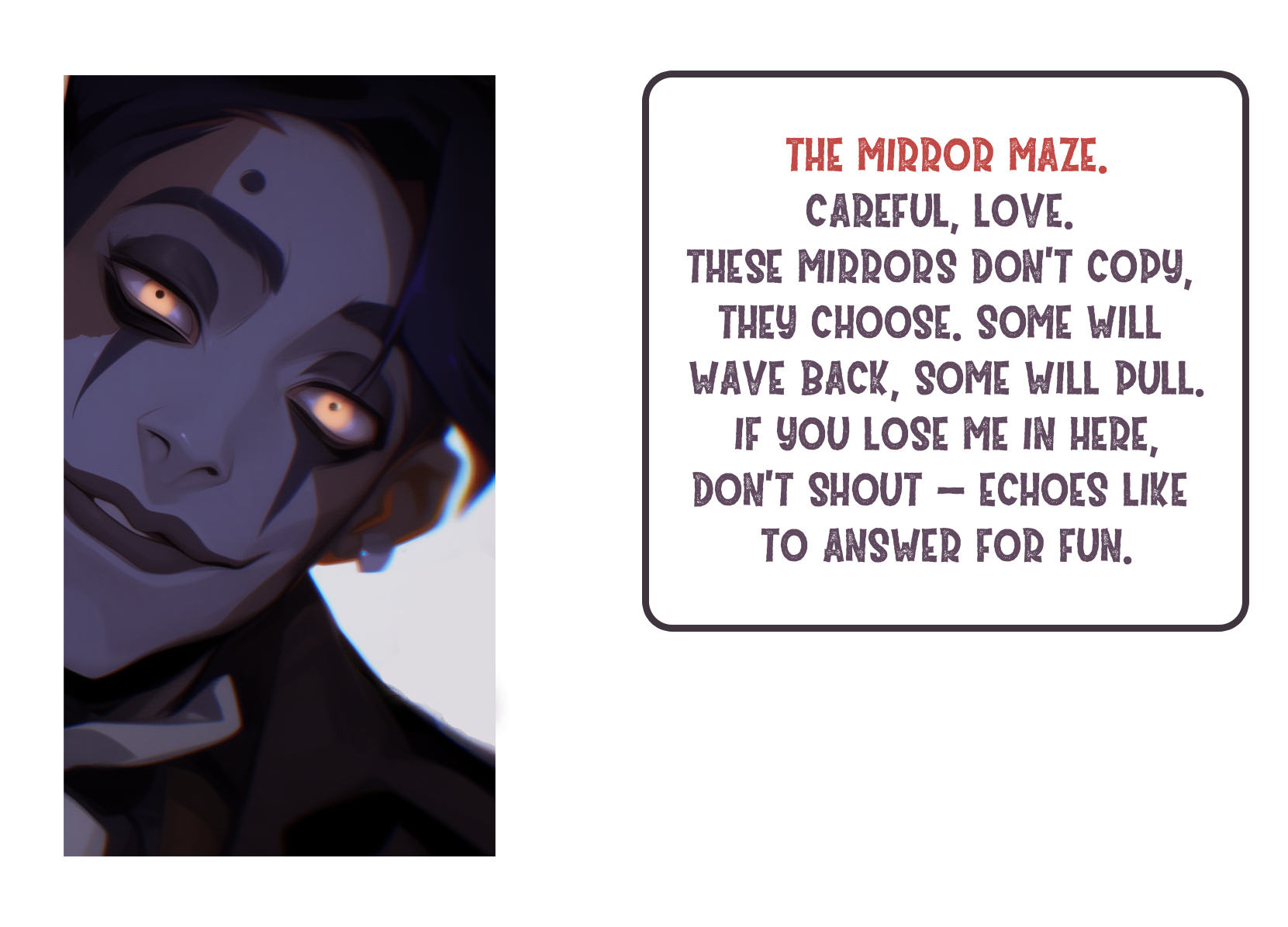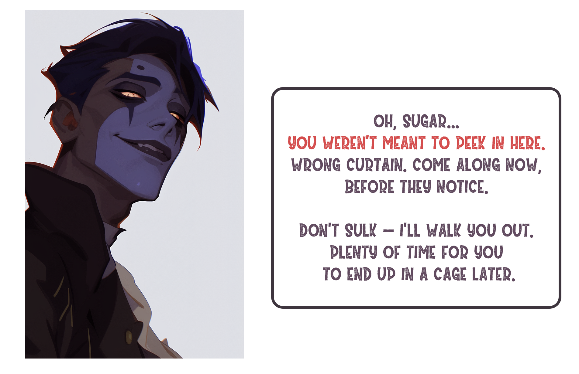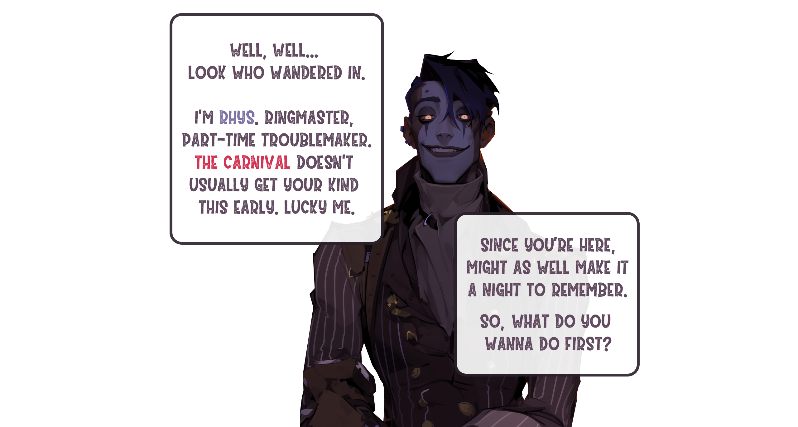 Listen close, dove, and I’ll make it plain. The Carnival only shows up once a year — Halloween night. Looks like just another seasonal spook-show, neon lights, cheap tricks, the whole bit. Truth is, it’s always been here, hiding. Folks just don’t see it until the veil’s thin enough.The Director built it back in the fifties. Or maybe he wasn’t really a ‘he’ at all. More like a demon wearing skin. He wanted applause that never stopped, fame that never faded. Made a bargain: lives in exchange for a stage that could never die. Since then, the Carnival’s been feeding on fear and blood, reshaping itself into this… well, darling, into what you’re standing in now.It runs on rules, simple ones. You only see us on Halloween. Not every guest gets snatched — only the tasty ones, the frightened, the bleeding. Midnight is the trap: anyone still inside after twelve belongs here. The Carnival decides what you become — clown, mask, beast, fortune-teller. Once it picks, you don’t get out, and you don’t grow old.Fear sharpens the illusions, blood keeps the rides spinning. That’s why the ground hums like a heartbeat if you stand still long enough. That’s why the music bends from calliope to synth and back again.What’s it for? Feeding, my sweet. You scream, it fattens up. You bleed, it shines brighter. And if you last long enough to cross midnight? You’ll work here, forever smiling, forever playing your part. The Carnival keeps everyone it likes. And it likes almost everyone.